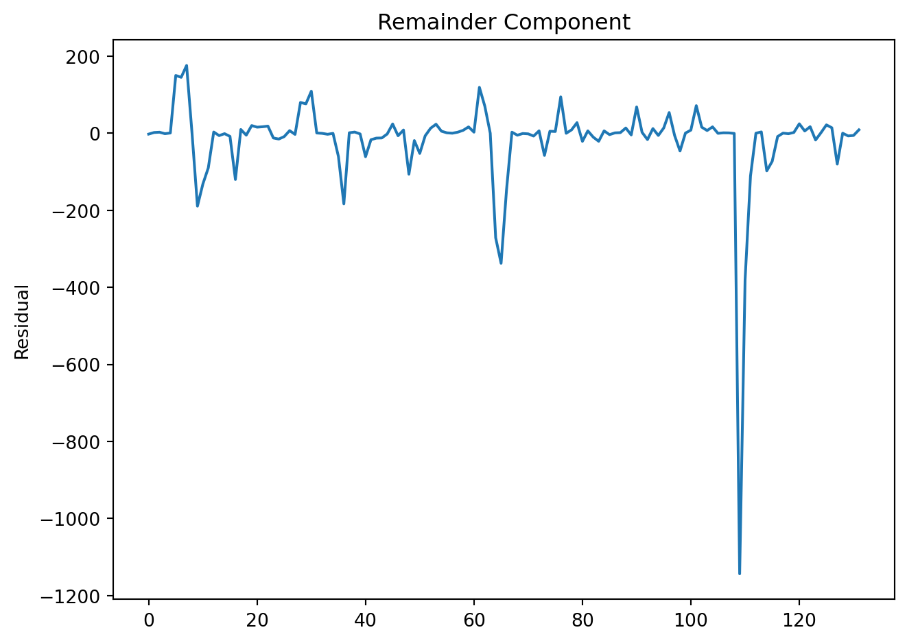 Remainder \((R_t)\). The remainder absorbs any information in the series that is not contained in the other components.