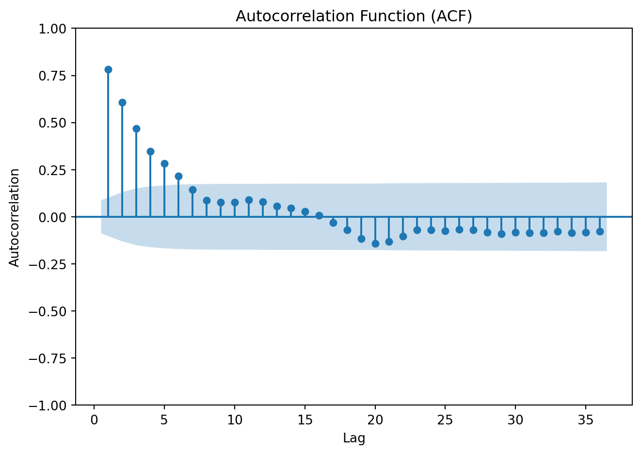 print(f"KPSS p-value: {kpss_st:.4f}")ADF p-value: 0.0000