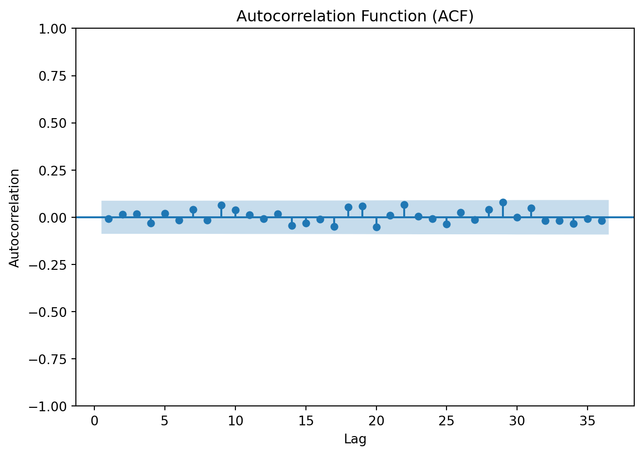 print(f"Ljung-Box p-value: {lb_test_wn:.4f}")Ljung-Box p-value: 0.8475